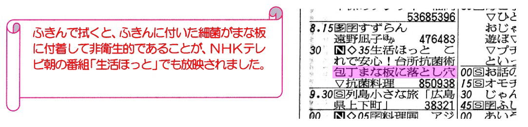 ![]() ★立てかけた状態で熱湯をかけ、まな板を消毒できます。