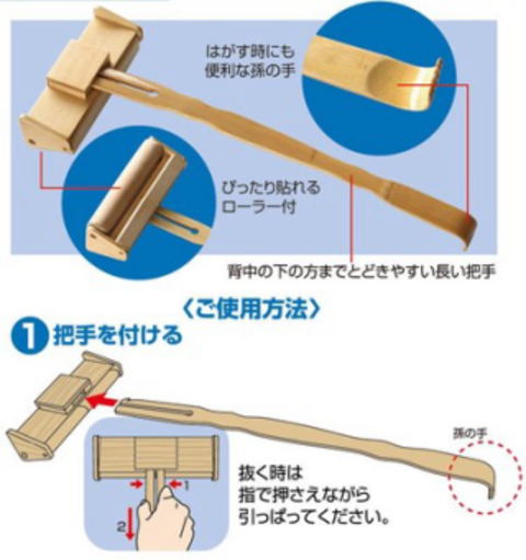 手が届かない背中の中央部に、一人で湿布が間単に貼れる湿布貼付具です。