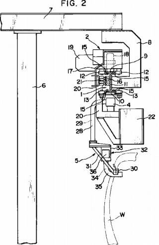 ワークを吊下げて搬送する吊下げ式の電動台車です。シンプルイズザベストで2輪ボギーを1輪ボギー化し、市販品を有効活用して低コスト化を図っています。高速走行にもかかわらず外部に設けた位置決め機構により台車を精度よく停止させ、同時にハンガーにエアーを供給してワークを正確に固定します。そうすることにより、搬送途中で停止させて正確にワークを位置決めし、吊下げたままロボットでシラーを塗布するなどの加工ができます。