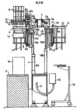 | 自動車のエンジンのケース類は多数本のボルトで一定のトルクを保証して結合されています。しかも機種によってボルトの種類や配置が異なります。近年の自動車生産はお客様のニーズに応え、いろいろな機種の車をジャストタイムで生産するようになりました。そのために開発された装置で、生産機種によりギャングヘッド(ボルトを締付けるソケットを配置した箱)を交換して対応し、いろいろな種類のボルトを一定のトルクを保証して締付ける装置です。 |