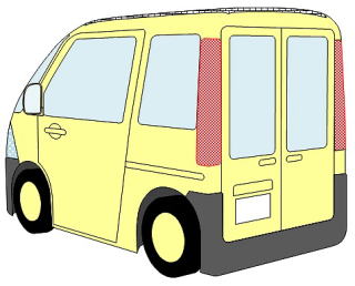 高齢者ドライバーはどうしても運転中の注意が緩慢になります。それをカバーするように窓は広くして特に前後の窓は下方まで広げ、バックミラーもワイドにします。また、バンパーもぶつけやすくなりますので、ワイドにして無塗装の安価なリサイクル成型品にして交換しやすくします。