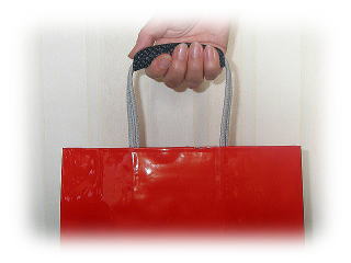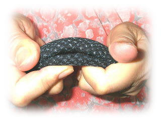 | 沢山入って重たいレジ袋を持ったときに、持手の部分が手に食い込んで痛くなるのを防ぐ補助具です。福岡特産久留米かすり(機械織です)を使用しています。 |