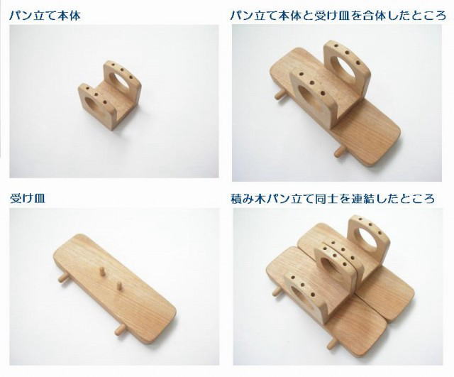 | ♪パン立て本体だけで使ったり、積木式に受け皿を合体したり、合体したもの同士を連結したり、食卓の状態に合わせて選べます。 ♪食卓にふさわしく、材料に樺(かば)の木を選びました。