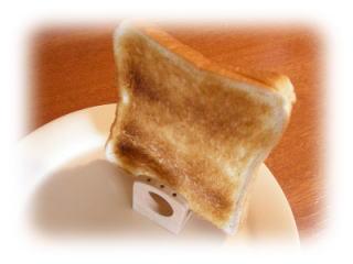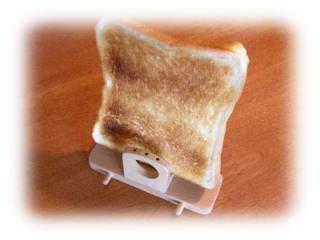 | 焼いた食パンを倒しておくと、水分を吸って食べる時にニチャニチャして食感が悪くなりますが、このパン立てを使うと焼きたての食パンのパリパリ感を保つことができます。 |
