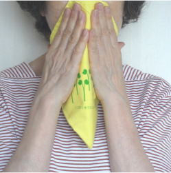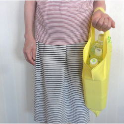 | エコと防災を兼ねた袋状のハンカチで、コンビニエコバッグとしても利用できるため、レジ袋削減に貢献します。 また、視認性の高い黄色を活かして災害時に救助を求める合図など防災用品としても役立ちます。