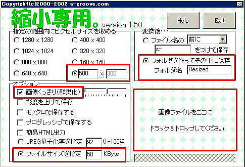*複数の画像ファイルをドラッグ&ドロップするだけで、簡単に縮小されたJpegファイルを作ることが出来る。